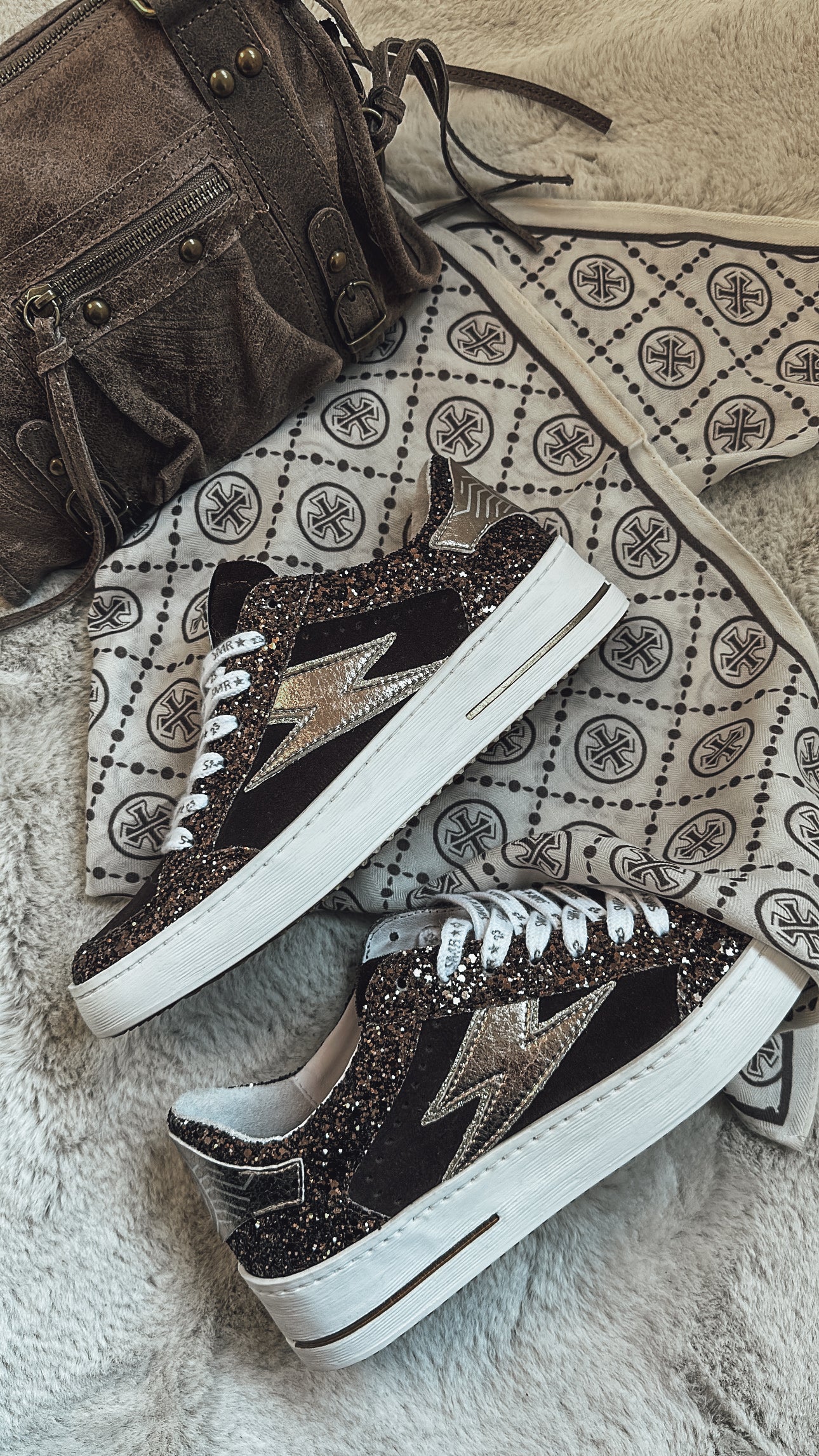 - Matières : cuir lisse, métallisé et glitter