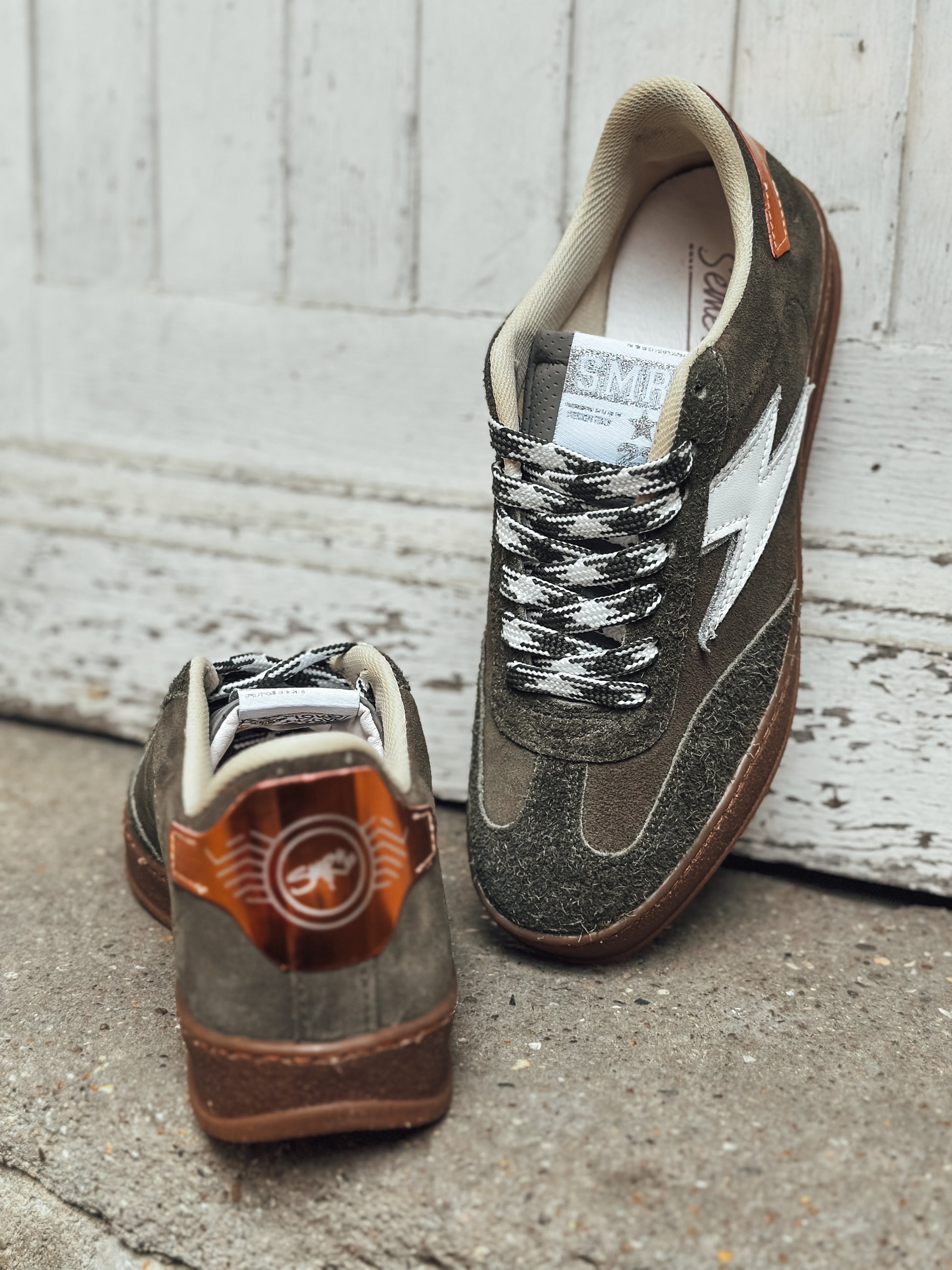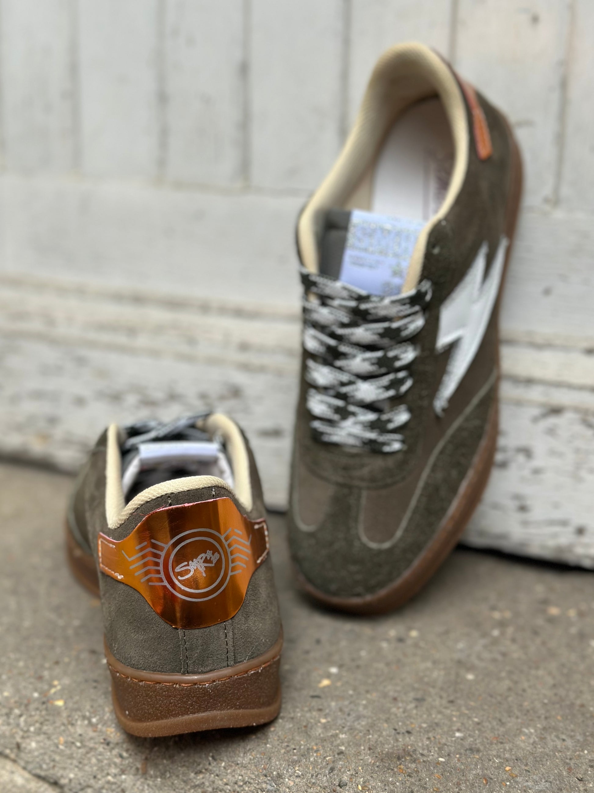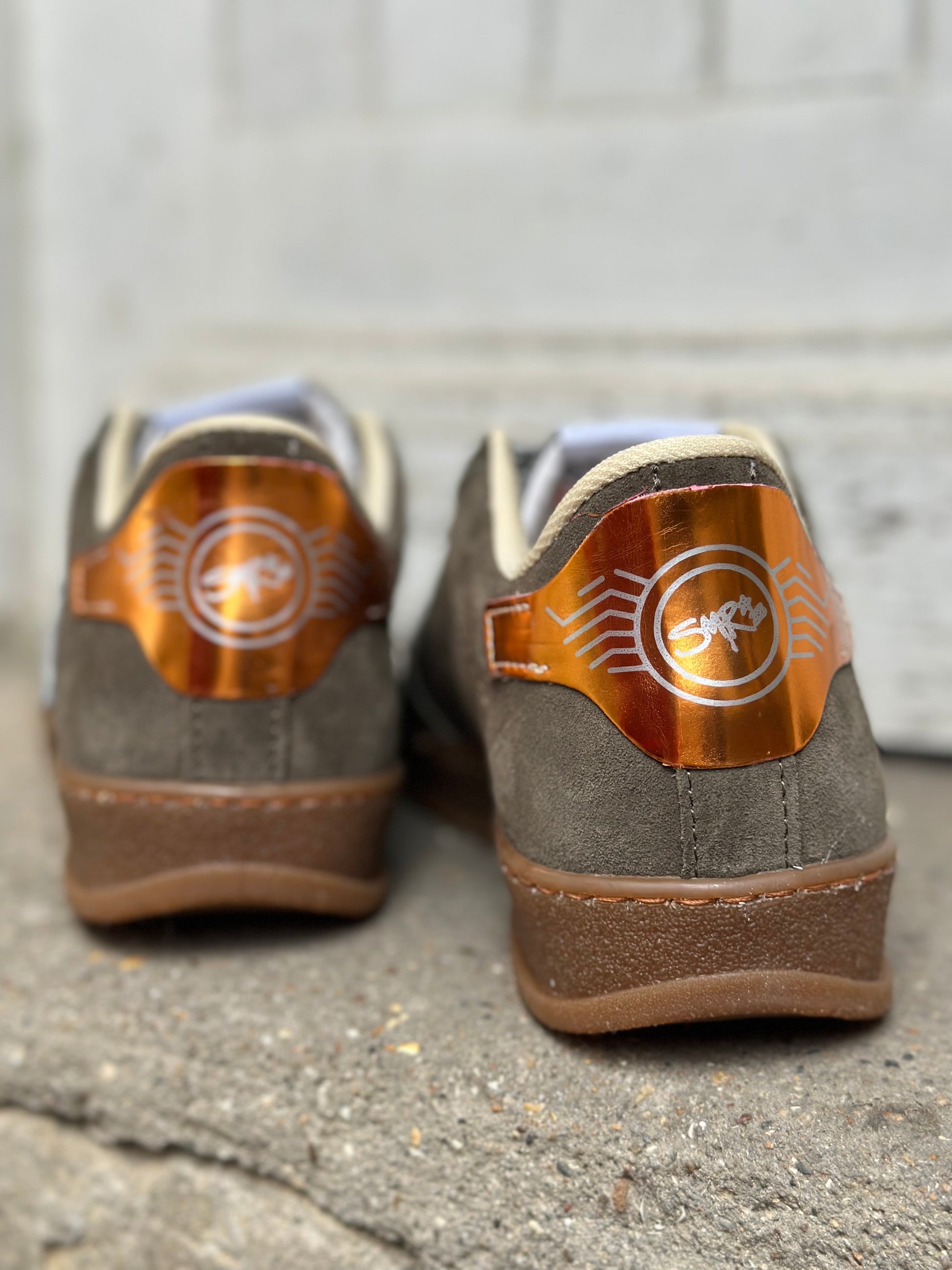 Basket en suédine avec un liseré argenté autour de l’éclair et un détail orange à l’arrière !