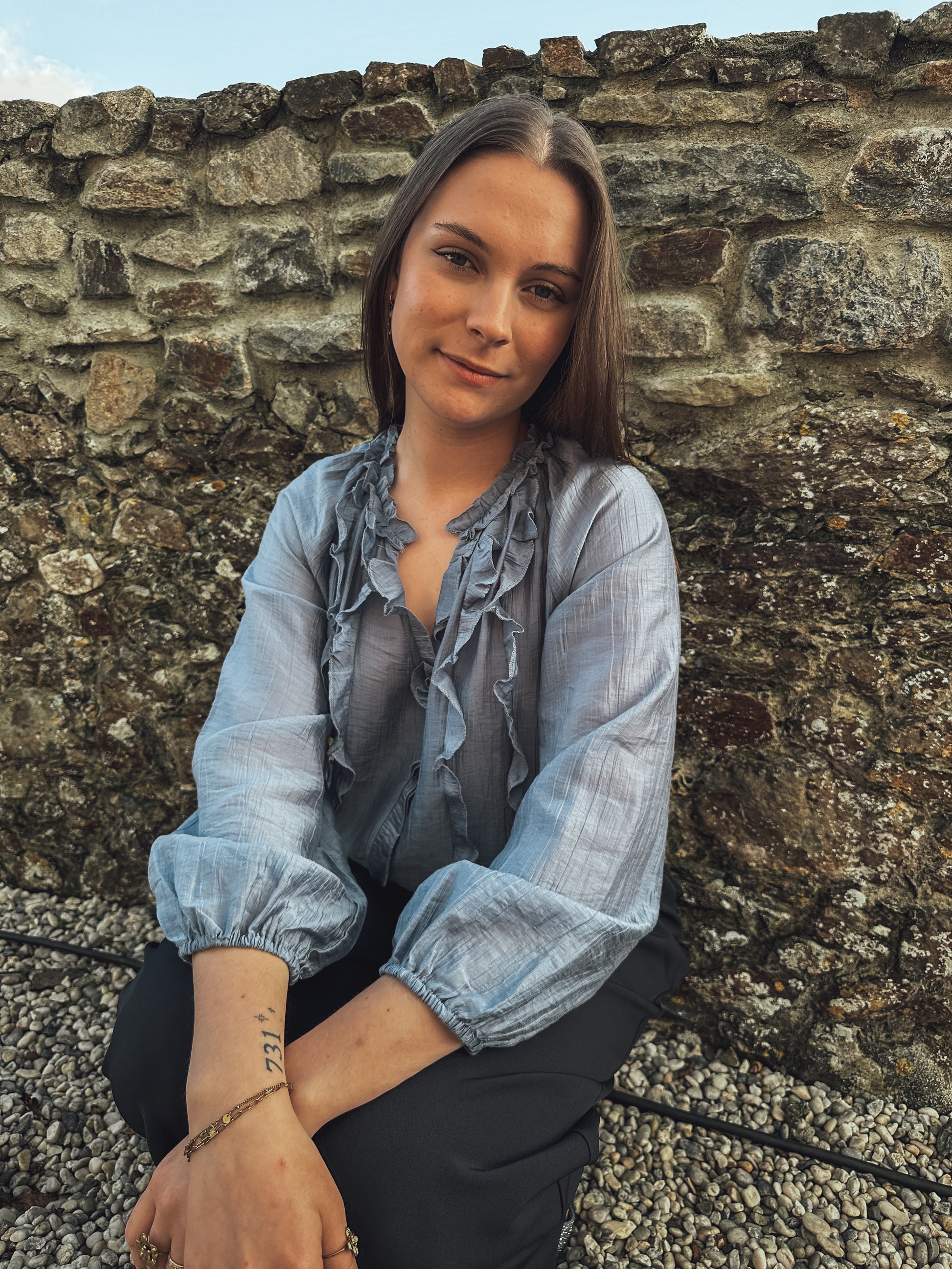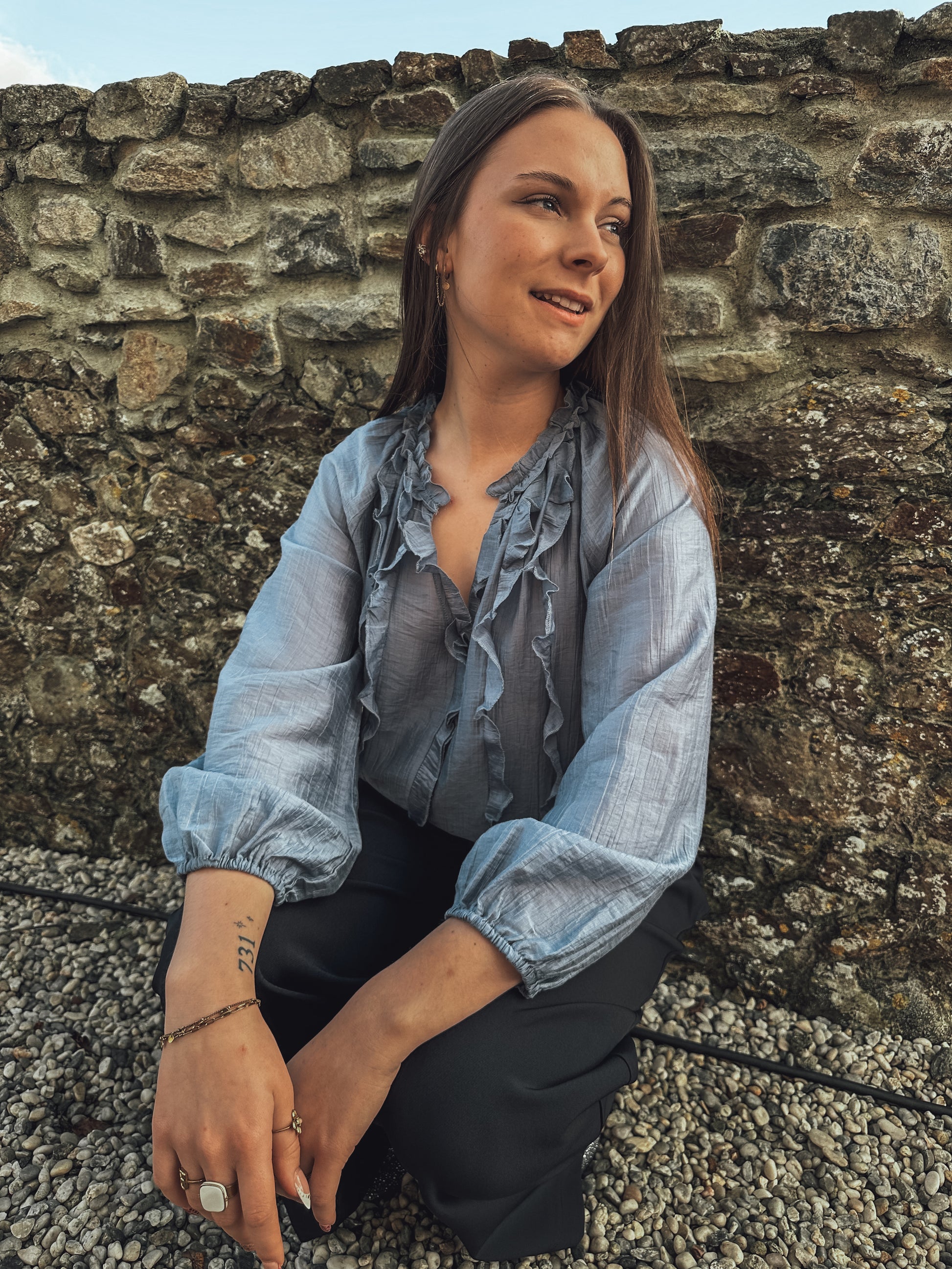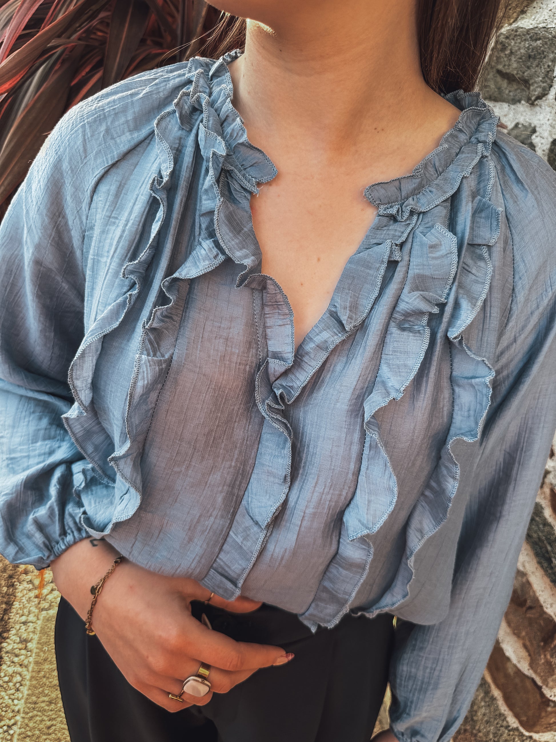 - Volants sur l’avant de la chemise