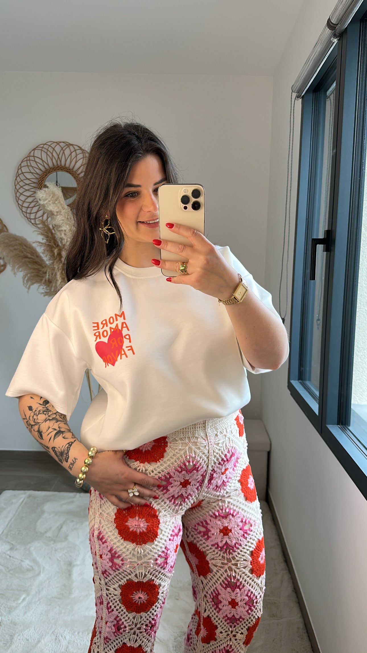 - Détails « More amor por favor » à l’avant et à l’arrière